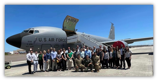 We were greeted by our outstanding day chairs Terry Montrose, Deputy Chief, Public Affairs at MacDill Air Force Base and Staff Sergeant Shannon Bowman, 6th Air Refueling Wing Public Affairs. Our bus tour helped us appreciate the expansive 5600 acres of the base boasting 7 miles of beautiful coastline. A desirable stop in any servicemember’s career, MacDill is home to 33 mission partners, the largest being Special Operations Command (USSOCOM), the 6TH Air Refueling Wing (6 ARW), Central Command (USCENTCOM), and the 927th Air Refueling Wing (927 ARW). Before we got down to the business of briefings, we were able to see some of the base’s amenities, including MacDill Beach, RV campgrounds, and two 18-hole golf courses available to those currently serving and veterans.